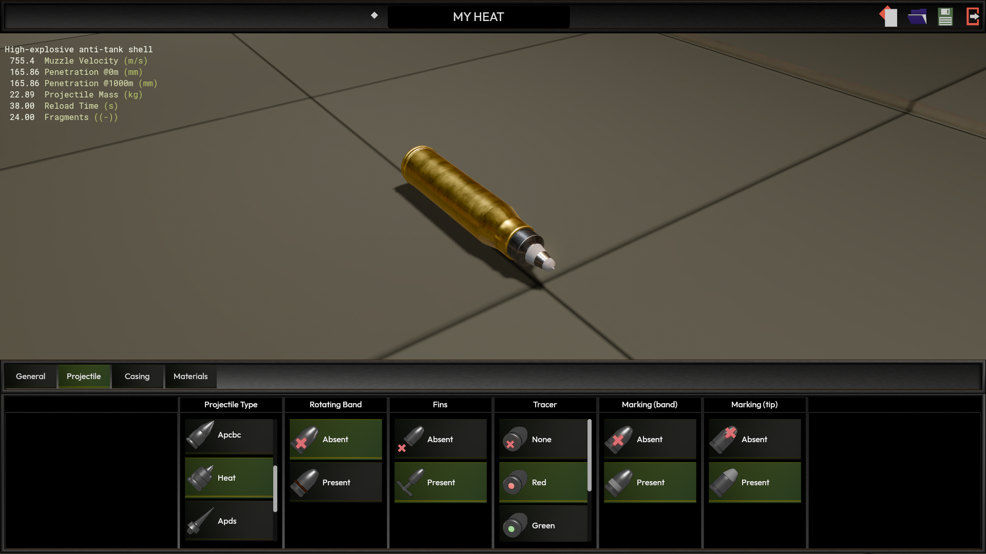 Construct your vehicle plate by plate. Armor interacts with projectiles in realistic ways, with penetration based on kinetic energy. Set plate thickness, adjust angles and watch how shots deflect.